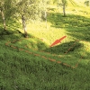 Найти древнее городище было несложно. "Да вон там холм этот, за ручьем", - махнула рукой продавщица магазинчика на окраине. Переходим по шаткому мостику через ручей и оказываемся у подножия холма. Высота в разных местах - от 7 до 10 метров, склон и по сию пору крутой: пока взбежишь наверх, запыхаешься.